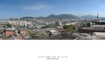 Located in a man-made crater, the Favela de Providenca surrounds the top of the site, while the Central do Brasil (the main train station in Rio de Janeiro), the central bus depot and subway stop lie below it. The topography of Rio de Janerio contains many such craters, which we have marked as geological amputations.