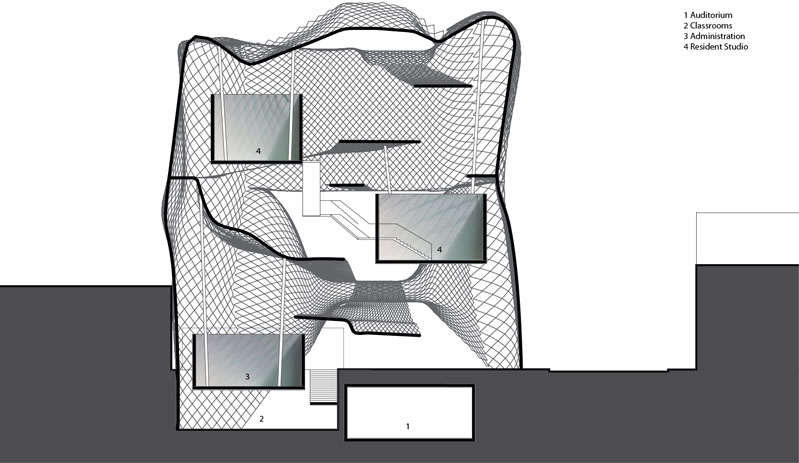 For this advanced studio, we designed an Experimental Art Institute in Greenpoint, NY. We began with a three-week material study to create an isotropic space. The discoveries led to the development of the project throughout the semester. Ideas were continually tested through a rigorous process of making and experimentation.